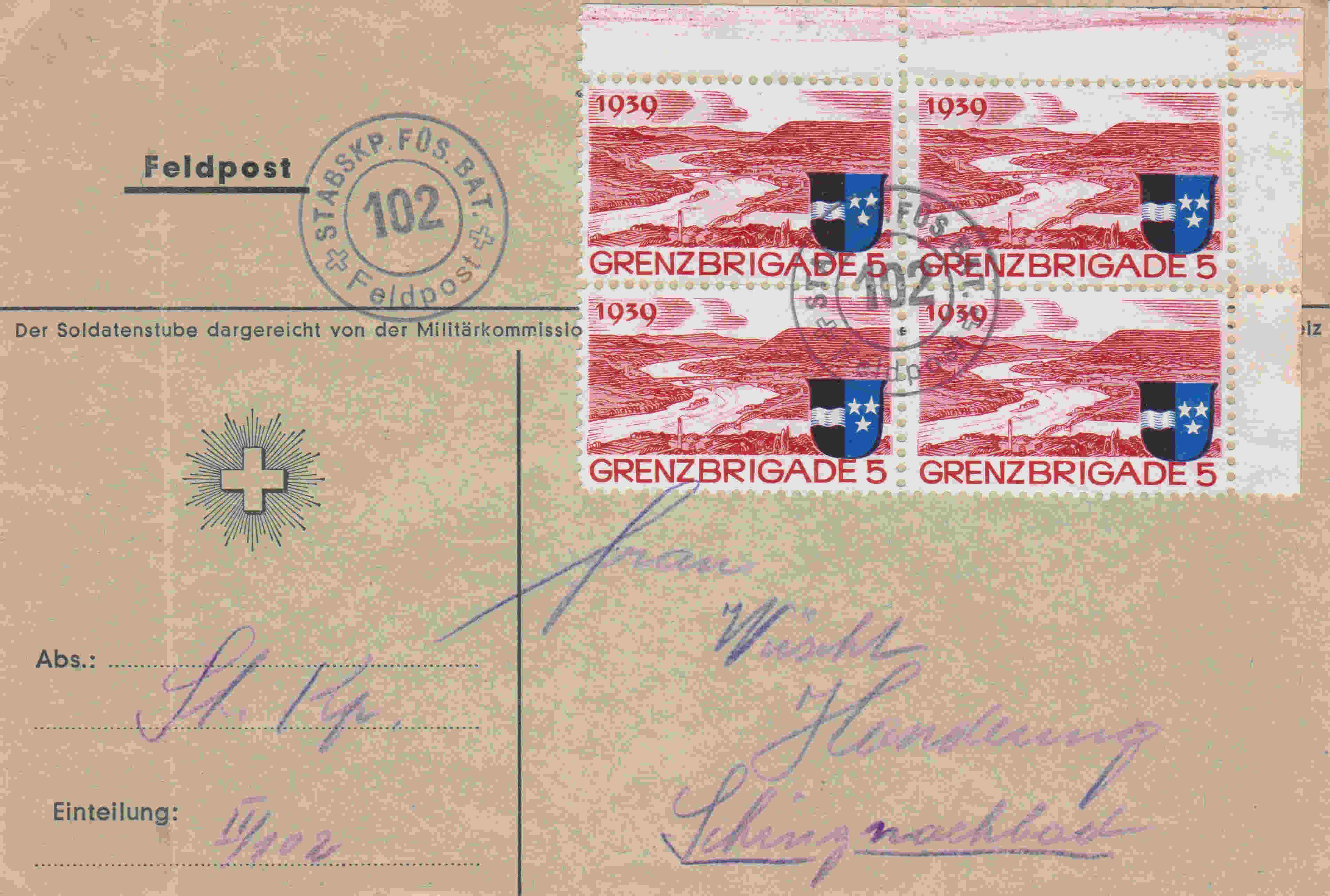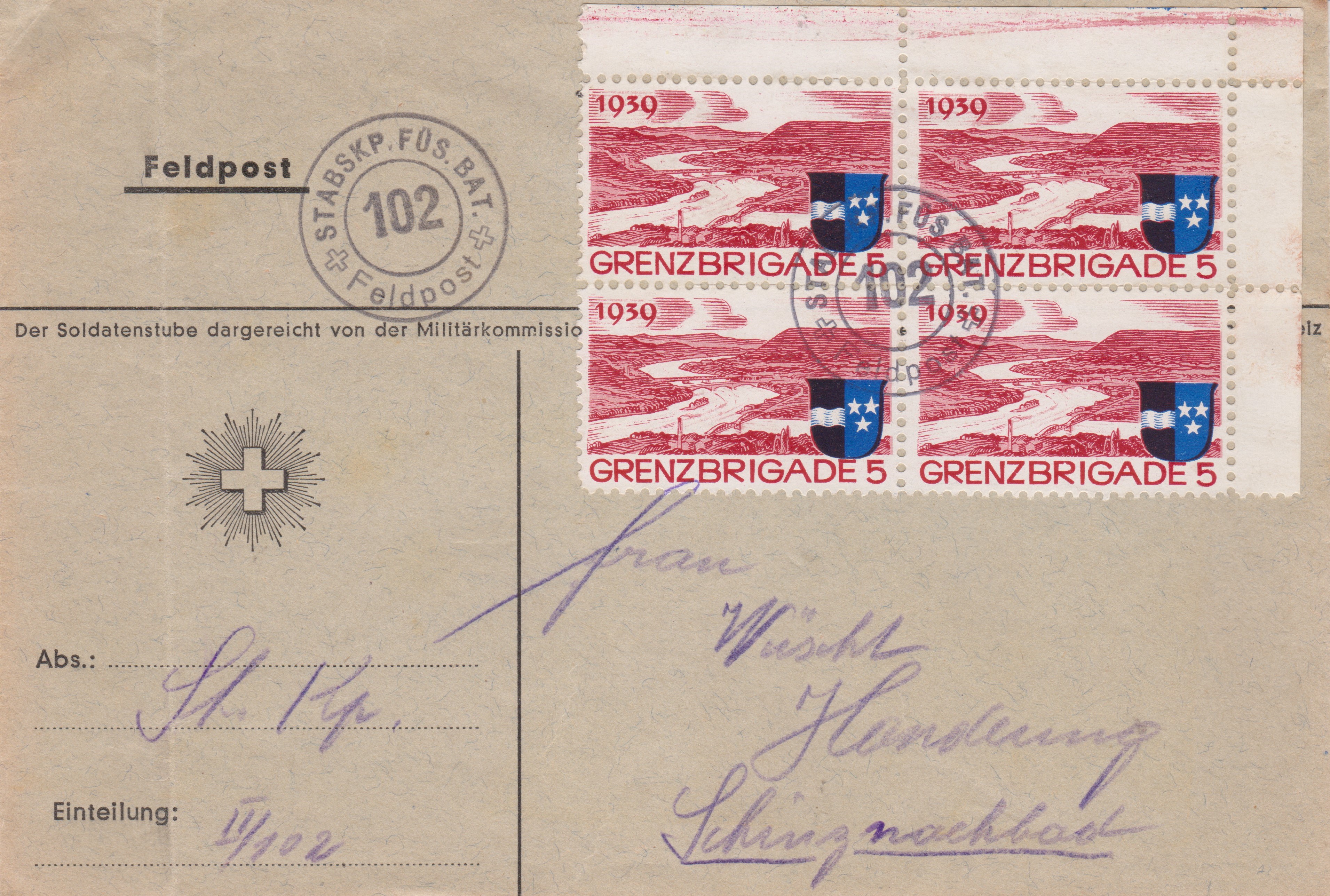 Zwitserland 1939 blok 4 zegels |